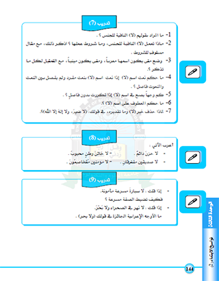 7. أن تكون قادراً على استنتاج الجمل الاسمية من النصوص المكتوبة أو المسموعة، ومعرفة ما يحدث لأحد الركنين من تقديم أو تأخير أو حذف.