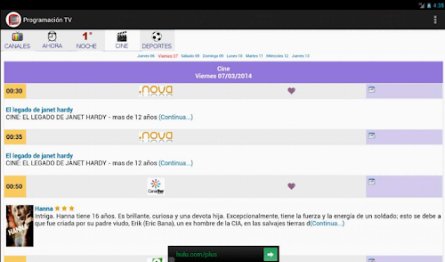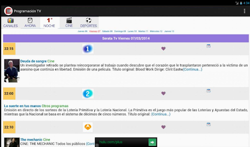 Programación TV nacional, autonómica, tv local, tdt, digital. Programación esta noche y Películas de la semana. Cine, series tv, deportes, documentales en la tele española.