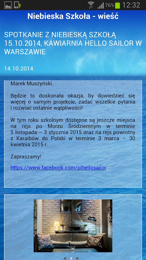 programu Niebieskiej Szkoły, wieści z pokładu oraz informacje na temat