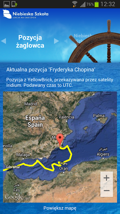 Niebieskiej Szkoły, pozwala również śledzić aktualną pozycję STS