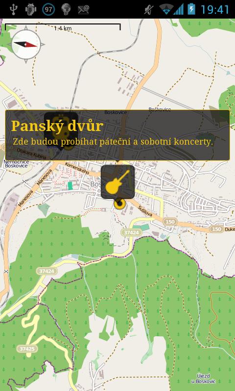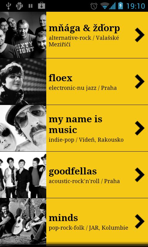 Mobile guide of music festival Festiválek bez bojů a válek 2012.