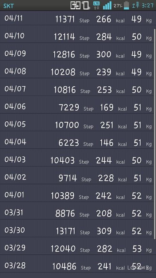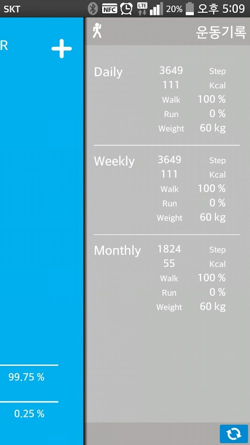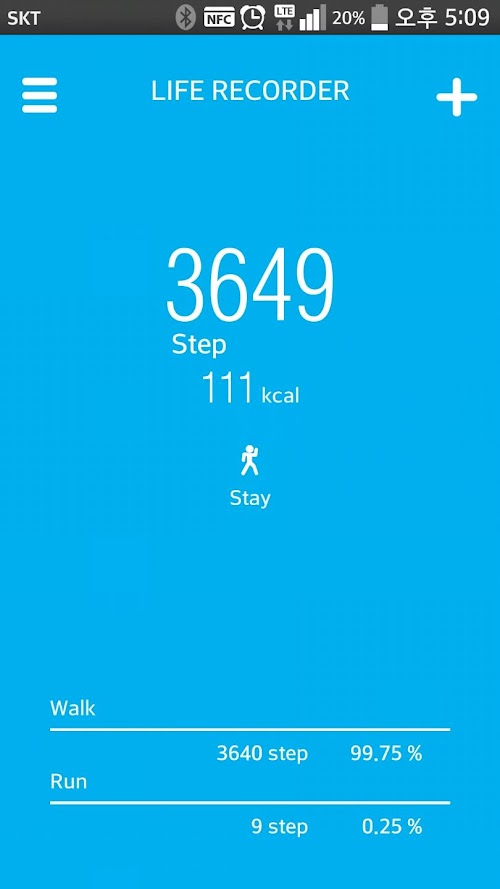 24시가 되면 다시 걸음 수는 0이 되고 24시간 동안의 걸음수는 데이터로 저장됩니다.Life recorders (Smart pedometer)