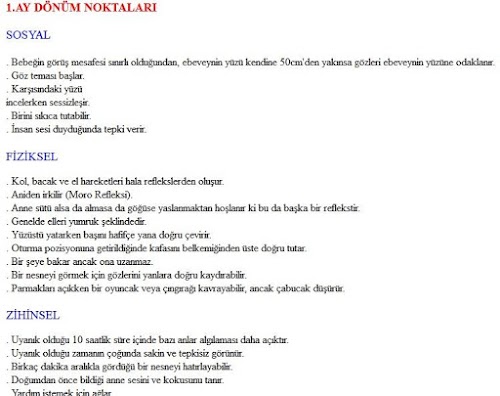- Sosyal Zihinsel ve Fiziksel olarak hangi ay nelerin beliriceğini önceden öğrenmiş oluyorsuz