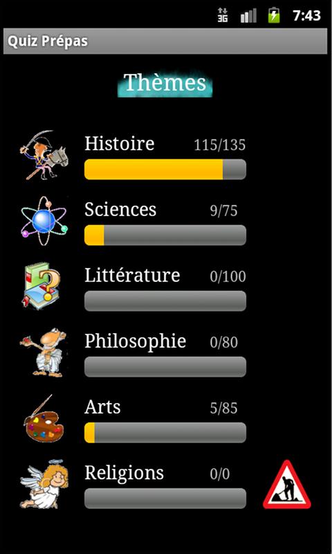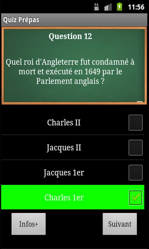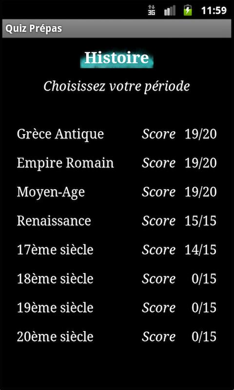Langue supportée : FrançaisQuiz Prépas quiz is designed to see you (or learn) your classical general culture. Based on a manual of general culture for post-bins France competition, you submit questions, sometimes very steep on six major themes divided into eight historical periods from ancient Greece to the twentieth century: