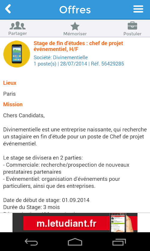 – Vous pouvez vous transférer les annonces par mail afin de postuler ultérieurement depuis votre ordinateur.