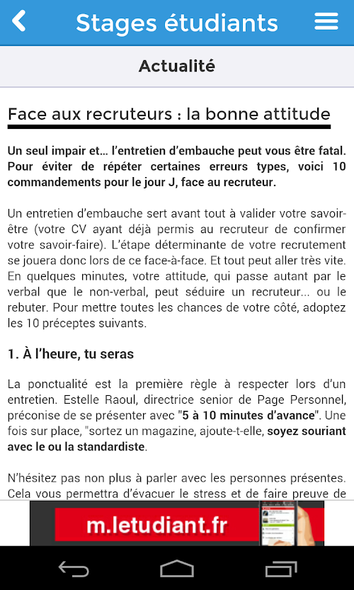 • L’actualité - Procédure, droits, conseils , bons plans, secteurs porteurs…de nombreux outils et des conseils pour toutes les démarches avant, pendant et après le stage.  • Student Internship: thousands of offers internships with the Student!