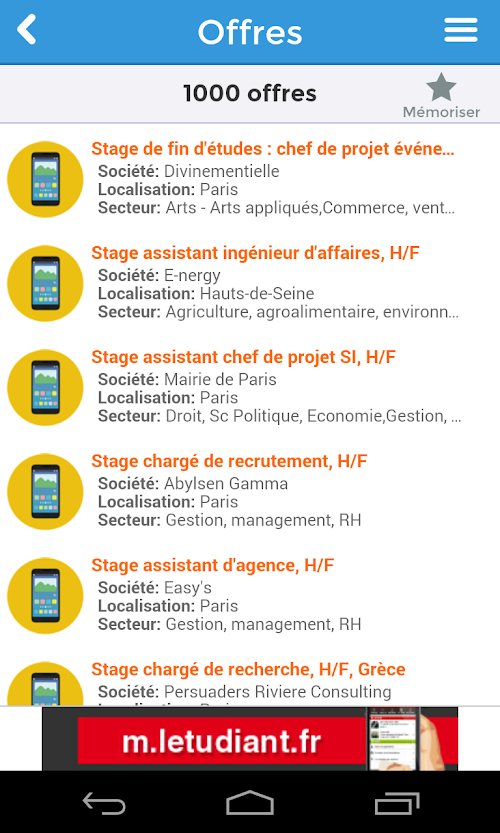 – Recevez des alertes - via le système de notification, soyez alerté des publication des dernières offres de stages disponibles correspondants à vos recherches.