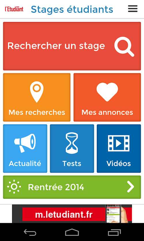 • Disponible sur les principaux Smartphones et tablettes, l'appli Stages étudiants vous donne accès au moteur de recherche de stages le plus complet du marché afin de trouver le stage étudiant qui vous convient.