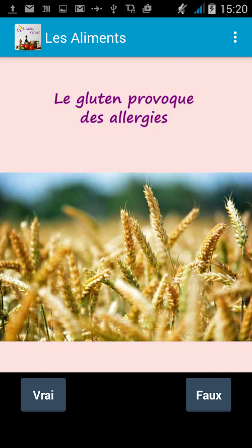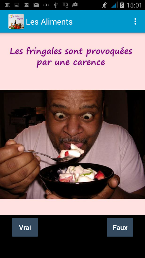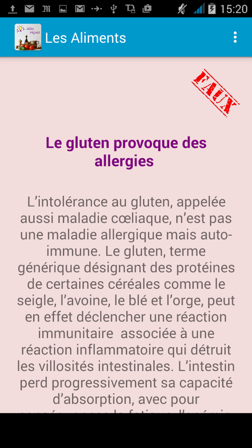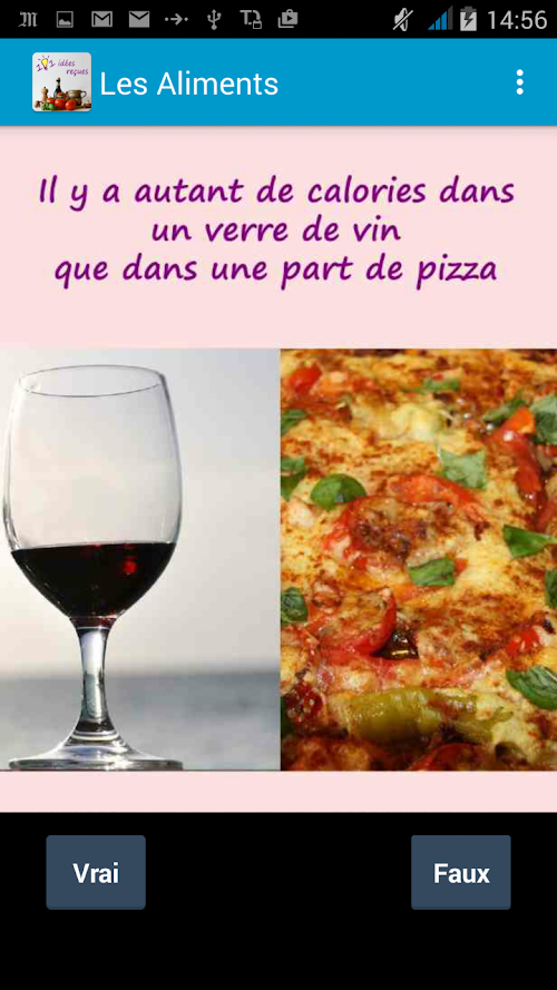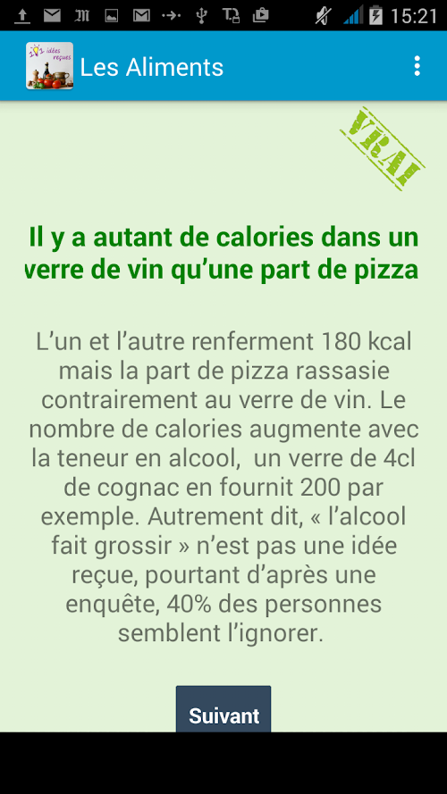 Alors vite, téléchargez « 101 idées reçues sur les aliments », l’application en français, totalement gratuite et utilisable sans Wifi.Bread, milk, meat, vegetables ... means anything and everything about food, nutrition, calories, fat, gluten, slimming diets and many others. The phrases are repeated in a loop so that one does not know if they are true or false, unless it is a bit of both.