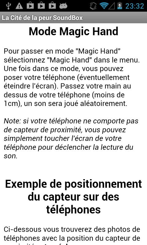 - Magic hand: tu passes ta main devant ton téléphone, et comme par magie un son est joué. Effet encore plus saisissant quant le téléphone est laissé écran éteint sur la table.