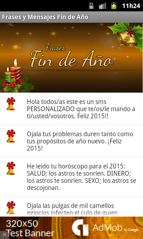 Si eres de los que te envían en noche vieja cientos de mensajes y no sabes que responder no esperes más.With this application you can congratulate phrases to 2016 and wish luck for the new year with a single click.