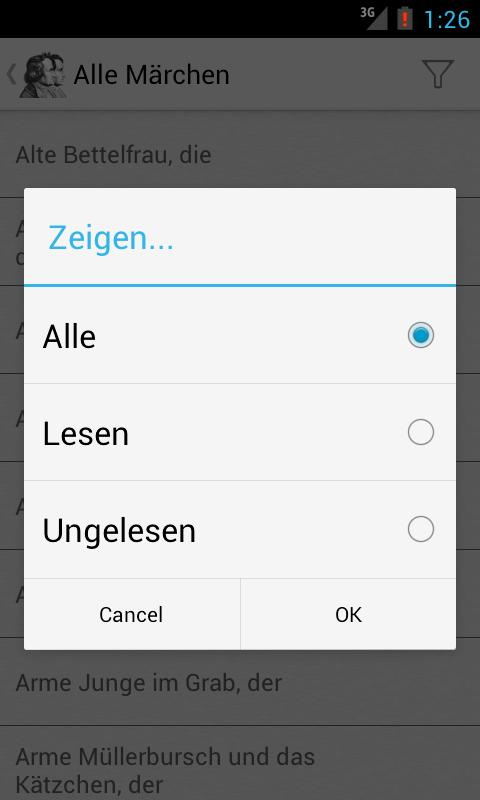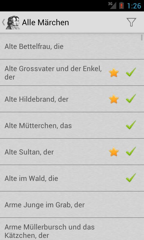 Anwendung enthält alle verfügbaren Brothers Grimm Märchen.