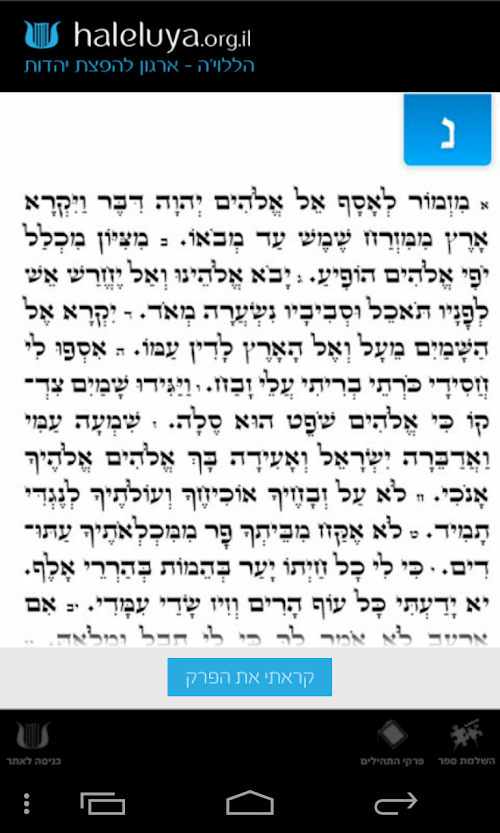 קוראים פרק תהילים לוחצים "קראתי את הפרק" ומשלימים ספר תהילים יחד עם כולם.Hallelujah - Come take part in a joint reading of Psalms to complete the book.