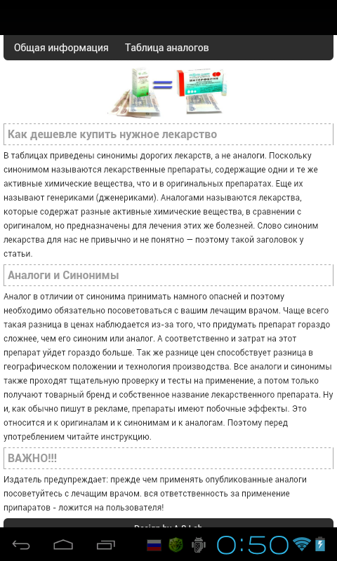 Слово синоним лекарства для нас не привычно и не понятно — поэтому такой заголовок у приложения.