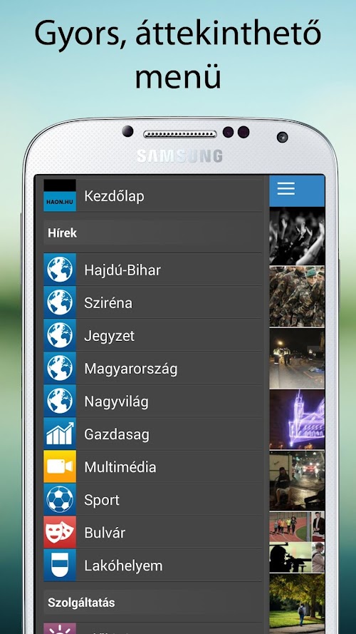 Great design, quick news bulletin, fast and high resolution galleries. Your application has a very simple articles to share, if any catch your eye, has also küldtheted to friends! Among the articles "swipe" -olással also can move!