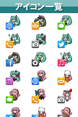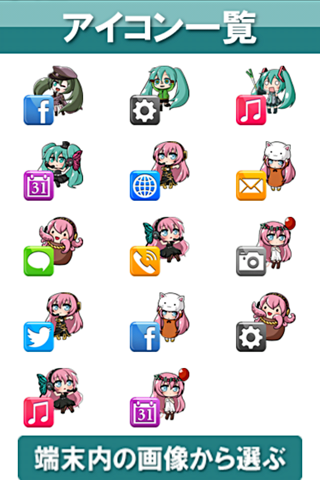 お使いのスマートフォンのアイコンを、人気のVOCALOIDキャラへ着せ替えられます!!