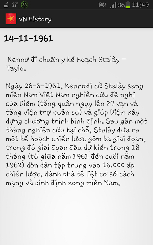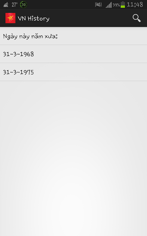 Đây là một ứng dụng giúp người dùng có thể biết được những sự kiện lịch sử một cách nhanh chóng và dễ dàng.The application supports user lookup on the historical events of modern Vietnam (from 1945-1996).