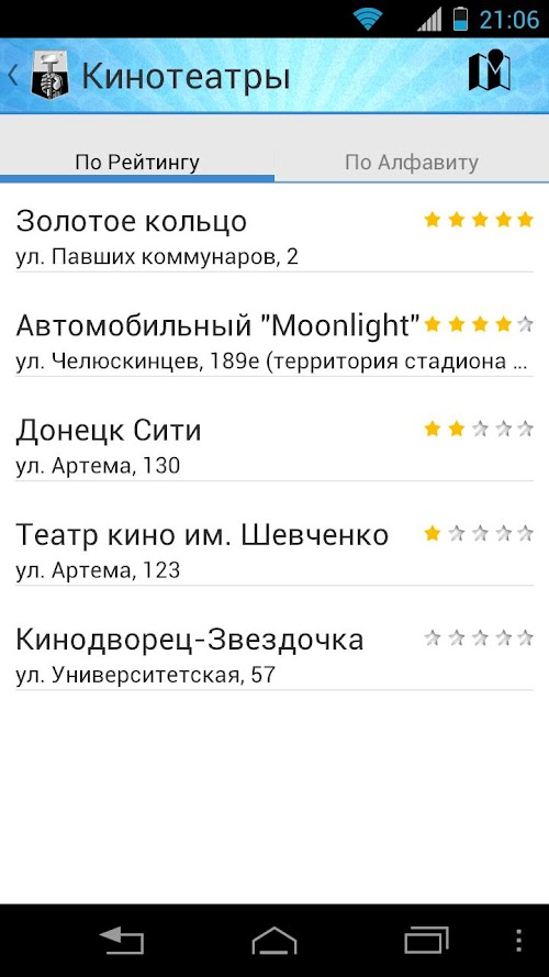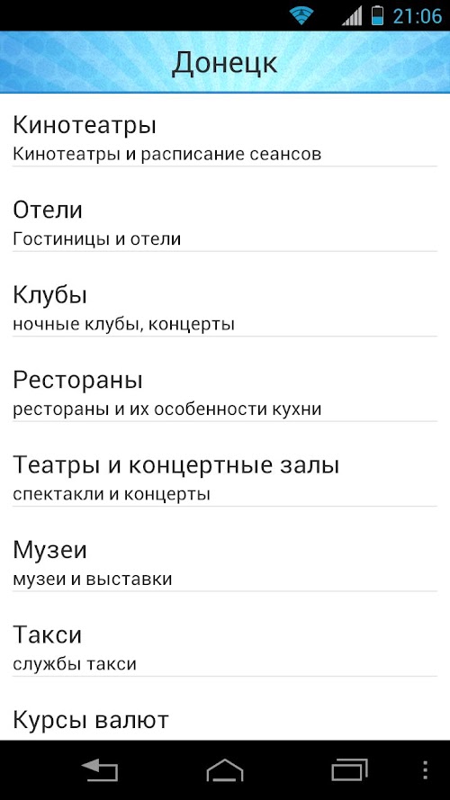 Возможно использование без подключения к Интернет.Poster Donetsk - handy guidebook entertainment venues Donetsk
