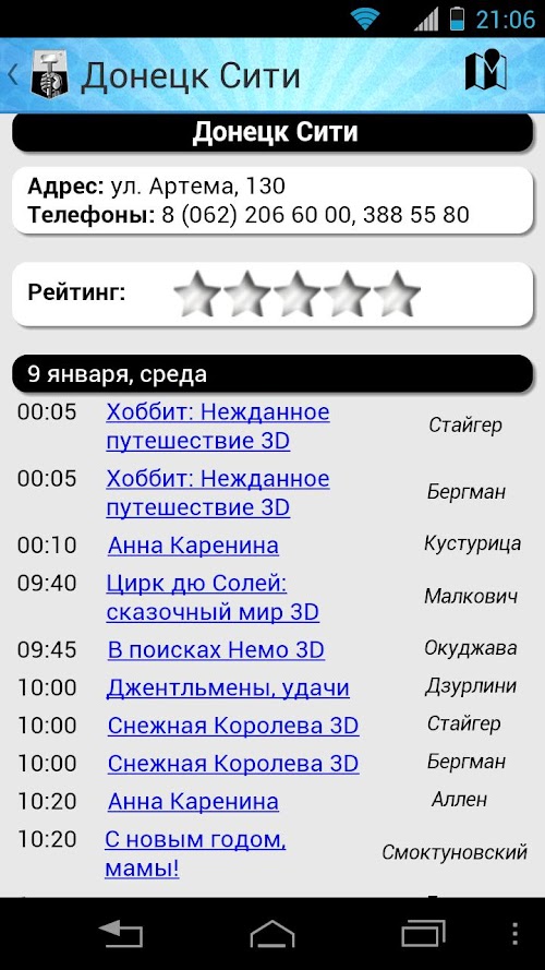 - Адреса и телефоны ресторанов, кинотеатров, музеев, театров и концертных площадок