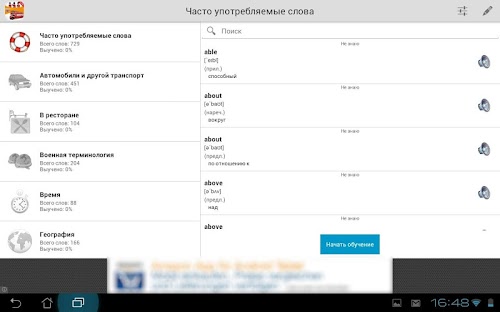 • Более 700 самых часто употребляемых английских слов совершенно бесплатно. Версия PRO содержит более 5000 слов.