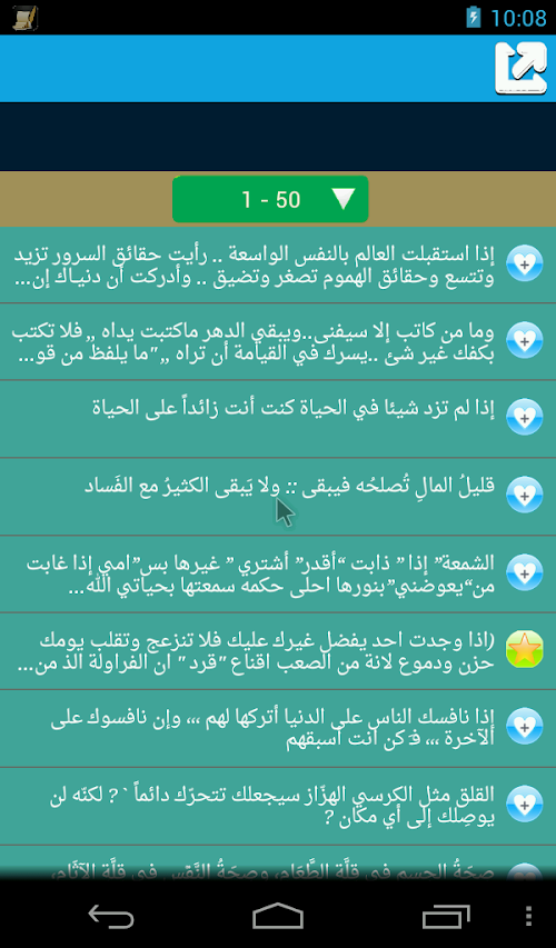 اذا اعجبك التطبيق او لديك اضافة تود اضافتها المرجو مشاركاتنا رايك في تعليق. فرايك يهمنا.Judgment and sermons Aktar than 500 wisdom and beautiful preaching in various areas of life, for lovers of the verdicts and sermons, you can browse the verdicts messages and a share via SMS or using networks Alajtmaih.ma your friends.