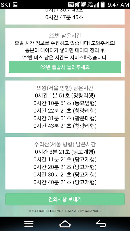 다음 버스, 지하철까지 몇 분이 남았는지 알려드립니다.