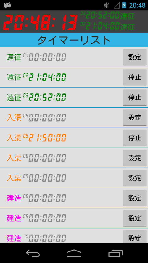 遠征や入渠の終了タイミングを知らせる便利なタイマー機能
