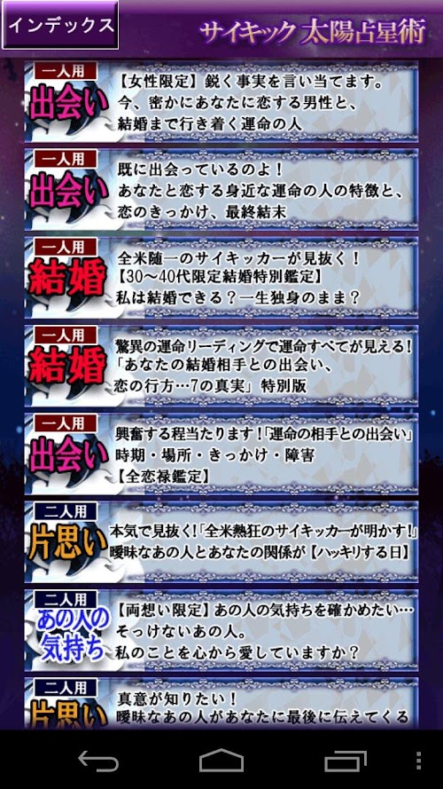 If you are looking to download other versions of 【当たる】超能力占い Android App, We have 1 version in our database. Please select one of them below to download.