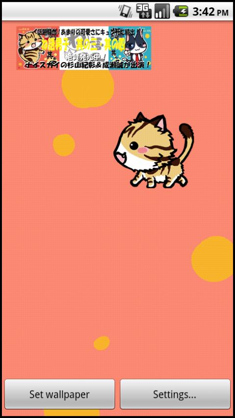 妄想CD「ね語男子・其の四」のキャラクターネコの待ち受け画面アプリです。猫の鳴き声は、このCDでネコを演じた人気声優、成瀬誠!CDでは彼が貴方の飼い猫になっちゃったりします!詳細はhttp://www.wave-master.com/happies/