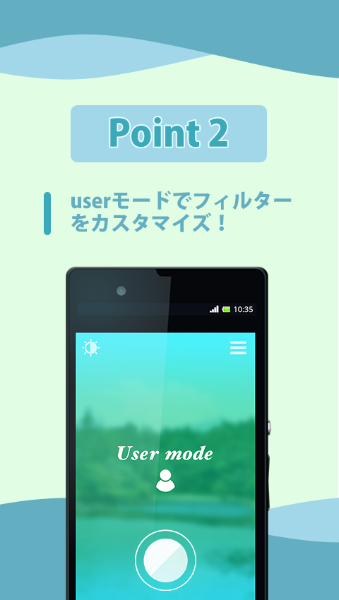 ・フィルタからお好みの色を選んで、明るさを調整できます。