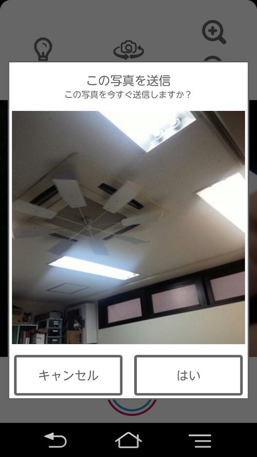 このアプリで写真を撮ると「この写真を送信しますか?"はい"、"いいえ"」で設定相手にその写真を送ることができます。