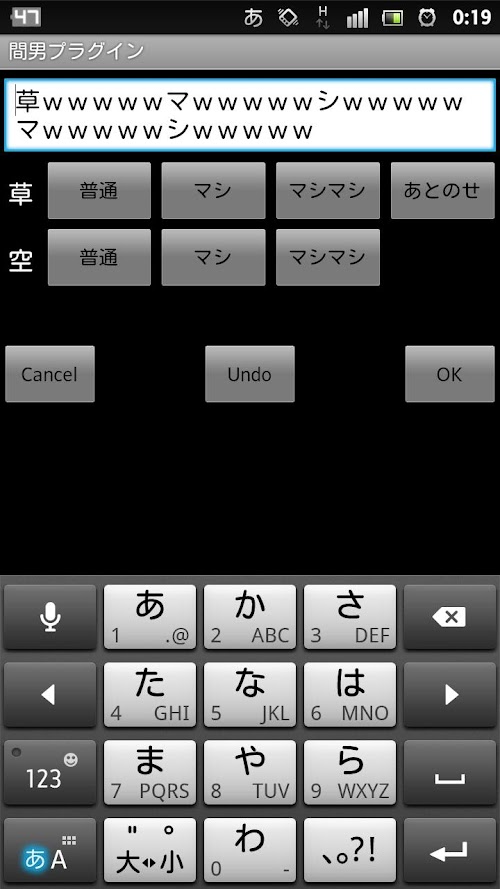 文字と文字の間に空白(全角スペース)か草(全角「w」)を挿入する、入力支援プラグインです。