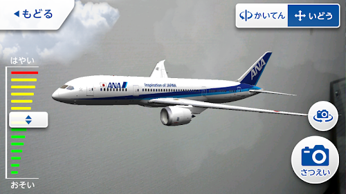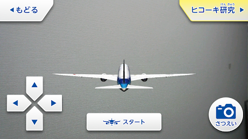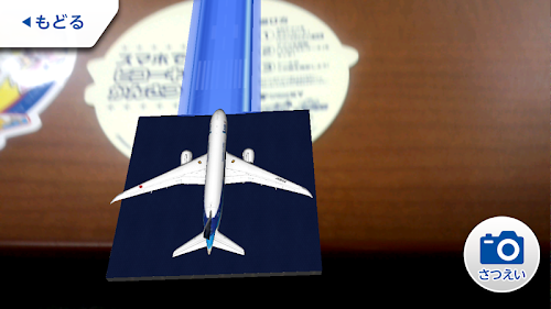 ANA ヒコーキかんさつアプリをインストール・起動し、「ヒコーキ研究」ボタンを押してARポスターにスマートフォンをかざして下さい。画面から突如ヒコーキが現れて、十字キーでゲームのように操作したり、ヒコーキを指で動かしたりして色々な角度から観察ができます。ヒコーキと一緒に撮影をすることもできます。また「てのひらヒコーキ」ボタンを押してANAオリジナルポケモンシールの裏面にかざすと、シールにある滑走路からヒコーキが登場して画面上を優雅に飛び回ります。子供も大人も一緒に最新型のヒコーキで楽しんでもらえるコンテンツとなっております。Or skip (B787) state-of-the-art airplane of ANA, 'ANA airplane observation is the AR application that enable you to manipulate. When you read in the smartphone AR poster which is installed at the boarding gate near the ANA flight Haneda Airport, New Chitose Airport, the Naha Airport, research airplane has appeared on the screen, and take shots and play while moving the airplane freely You can. Also, put the palm ANA original Pokemon seals get at ANA DUTY FREE SHOP and ANA FESTA in the restricted area of the airport across the country (some, you get in the store of the restricted area outside), and reads in the smartphone the back side of the seal , airplane will fly around in a variety of patterns in the palm of your hand. In "ANA original Pokemon seal get at the airport" and "AR poster which is installed at the airport", you can enjoy with a double play different each.
