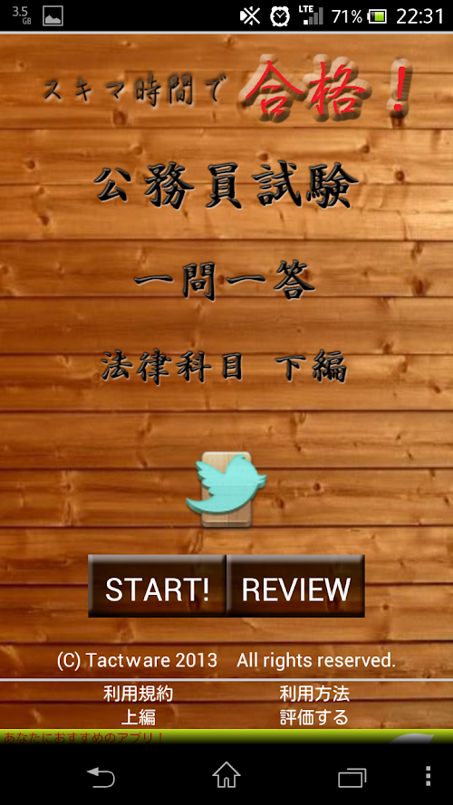 This version of スキマ時間で合格!公務員試験 一問一答 法律科目 下編 Android App comes with one universal variant which will work on all the Android devices.