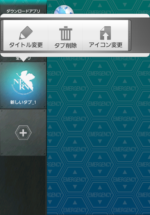 ・「+」ボタンを押すと新しいタブが増え、そのタブを長押しするとタブのタイトル変更やタブの削除、タブのアイコン画像を変更できます。