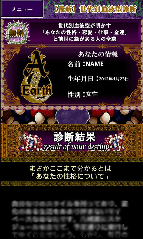 If you are looking to download other versions of 【最新】血液型占い Android App, We have 1 version in our database. Please select one of them below to download.