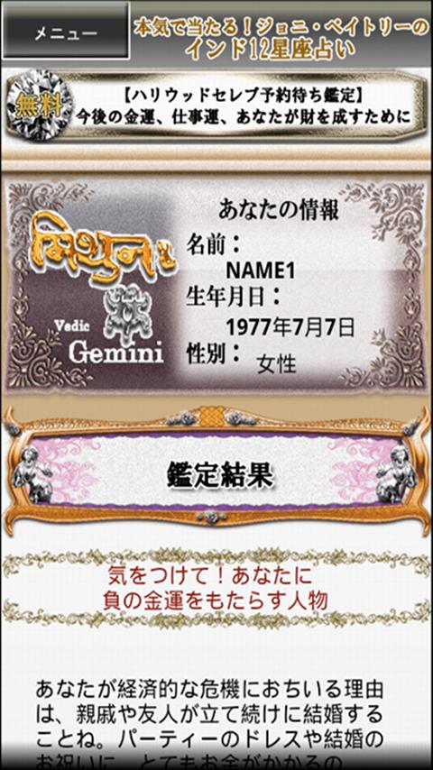 If you are looking to download other versions of 本気で当たる!奇跡の「インド12星座占い」 Android App, We have 1 version in our database. Please select one of them below to download.