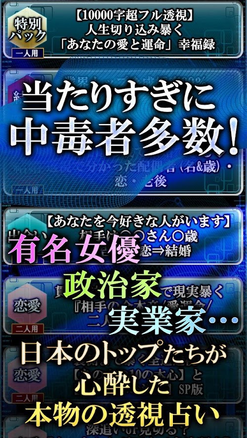 If you are looking to download other versions of 高精度99.9%的中*生体透視占い 摩哉 Android App, We have 1 version in our database. Please select one of them below to download.