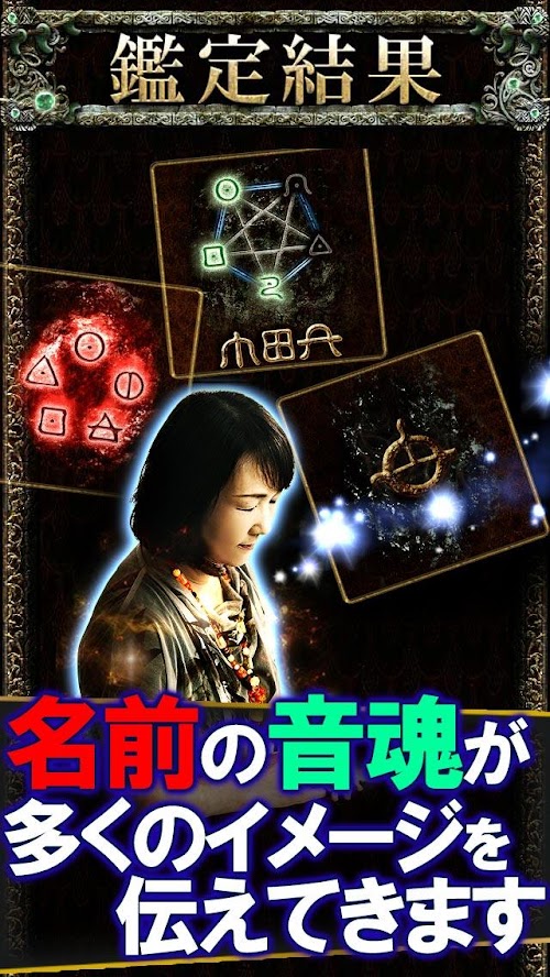 名前の「音」は、それ自体が周囲へ強い影響を与えるものです。またその音の響き方、伝え方はその人の本質を如実に表します。本鑑定では、授けられた名前の音魂からその人の運命、宿命、人生を再現していく「言霊能師みひろ」独自占術を使用しています。実際の鑑定を忠実に再現しました。その奇跡の力をアプリにてお楽しみ下さい。