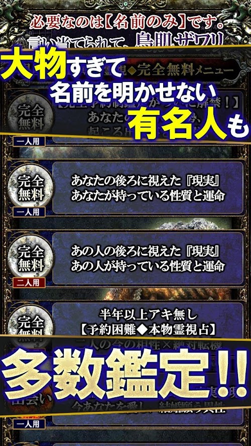無料鑑定は5メニュー。