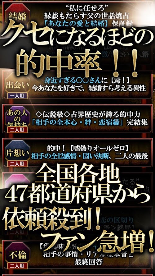 This version of ギネス級当たる占い◆1000万人が頼る【的中の父 田口二州】 Android App comes with one universal variant which will work on all the Android devices.