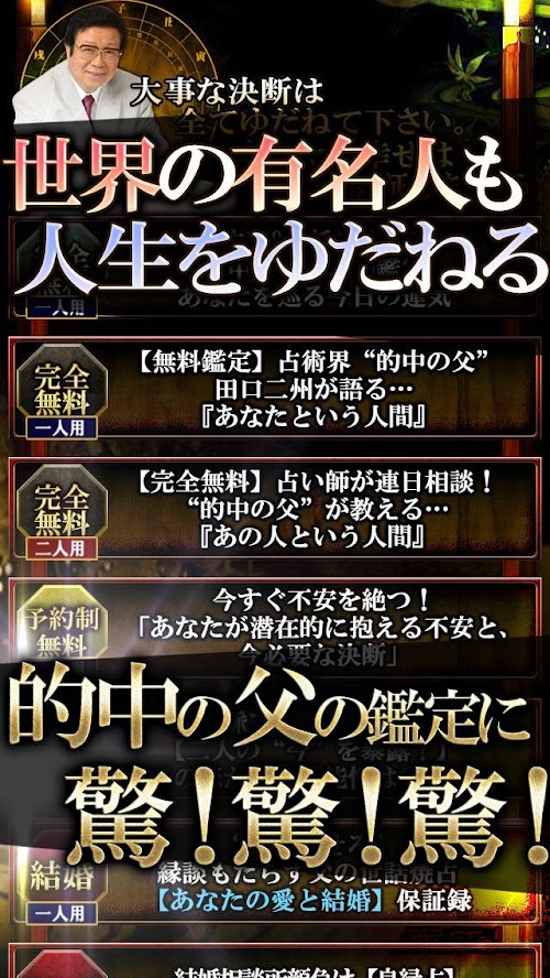 If you are looking to download other versions of ギネス級当たる占い◆1000万人が頼る【的中の父 田口二州】 Android App, We have 1 version in our database. Please select one of them below to download.