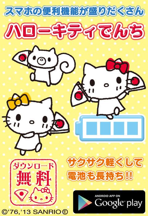 (C)1976,2013 SANRIO CO., LTD.(E) Free battery widget "Hello Kitty (Hello Kitty)" of us to save power cute simple operation ♪ 's (Battery Widget)