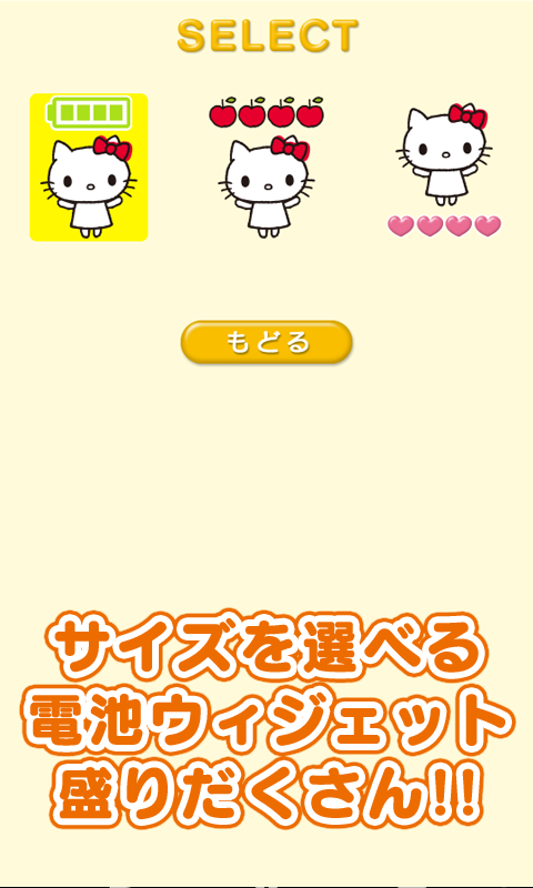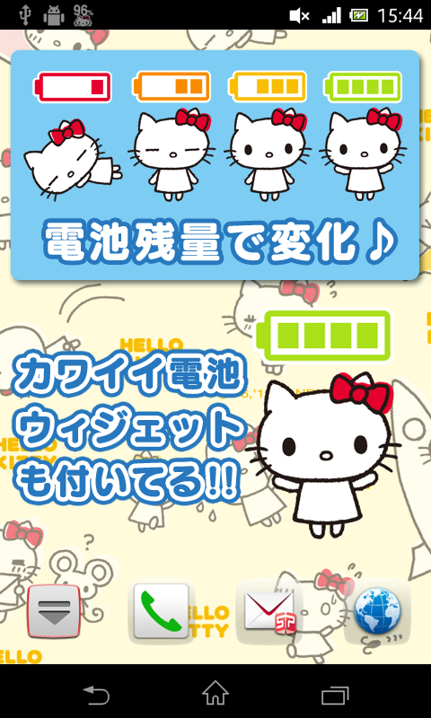 ホーム画面に「ハローキティの電池ウィジェット」を設定する事ができます。