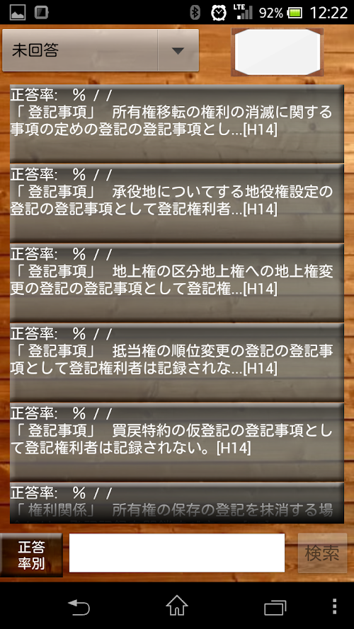 The mistake was a problem, it is added to the list of "REVIEW", by the percentage of correct answers, please take advantage of it so you can also view another field to strengthen weaknesses. "REVIEW" list has been added problem, will be deleted if it is correct at the time of random questions again, from the "REVIEW" list.