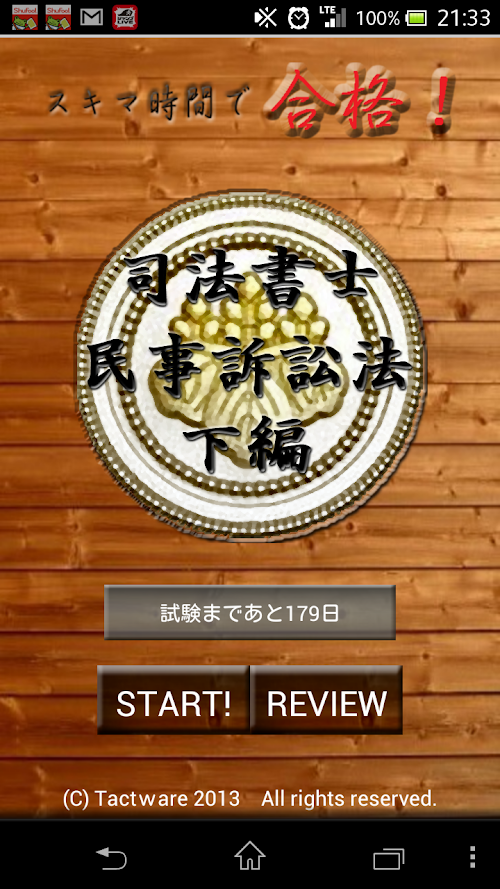 During the commute, the lunch break, etc., is an application to efficiently study of judicial scrivener qualification test using the gap time. People who study time together at work can not be taken, it is for people who are considered to be the first to start a future test study.