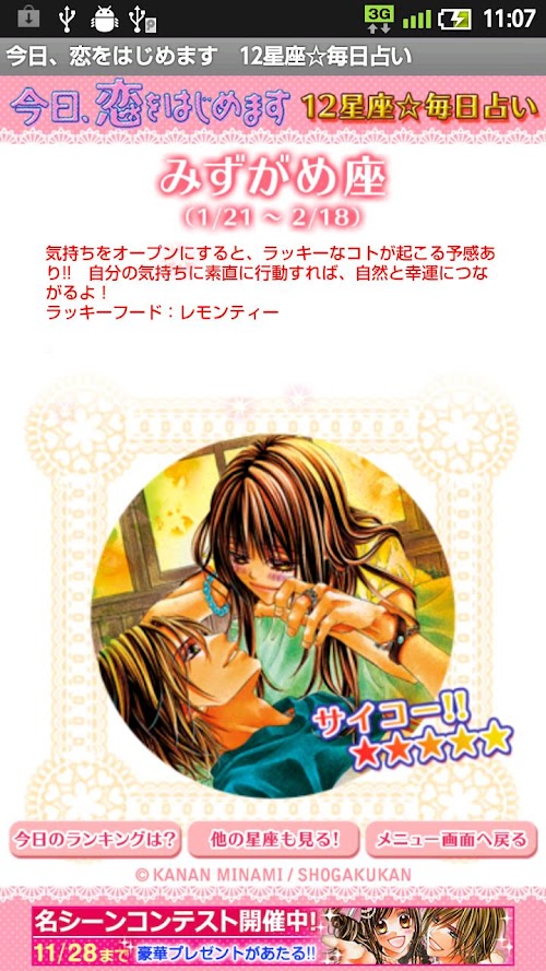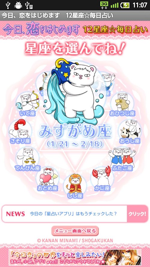 大人気少女漫画「今日、恋をはじめます」が、超かわいい星占いアプリになって登場!!