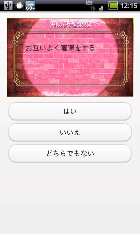 そして浮気度の診断結果が0%~100%の間で答えます。 It is a diagnostic application to check an affair of the opposite sex.