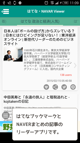 はてなブックマークの記事とNAVERまとめの記事をまとめてささっと読めるアプリです。