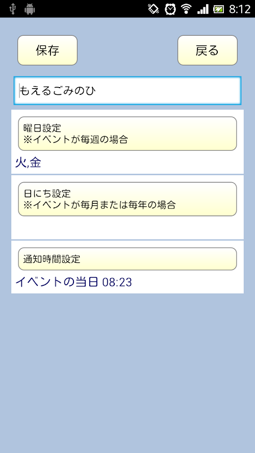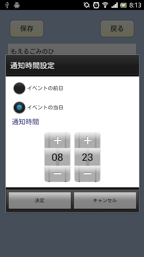 ・通知設定(通知時間の設定)You can register the desired notification conditions and events you do not want to forget in advance, and notifies.
